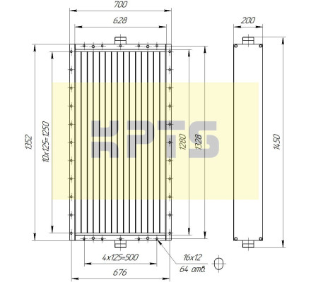The HSS КPТS 09.В-1К23 industrial heater is an efficient heat exchange device designed for heating large premises and technological air heating. Thanks to the use of finned tubes, it features an increased heat exchange surface, ensuring high performance and energy efficiency.